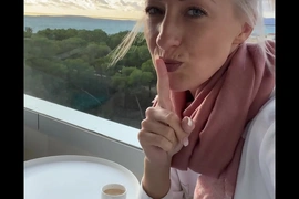 Girlfriends Blonde stunner stops work for some solo girl fun